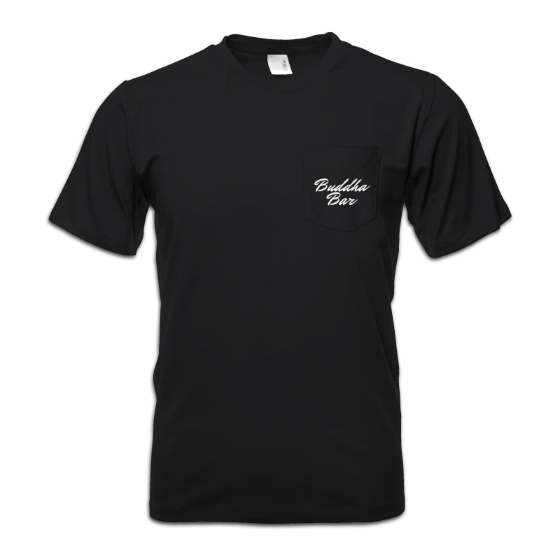 6.1 oz. 100% Ringspun Cotton. Small Logo on Pocket & Large design on Back.