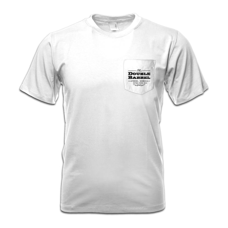 6.1 oz. 100% Ringspun Cotton. Small Logo on Pocket & Large design on Back.