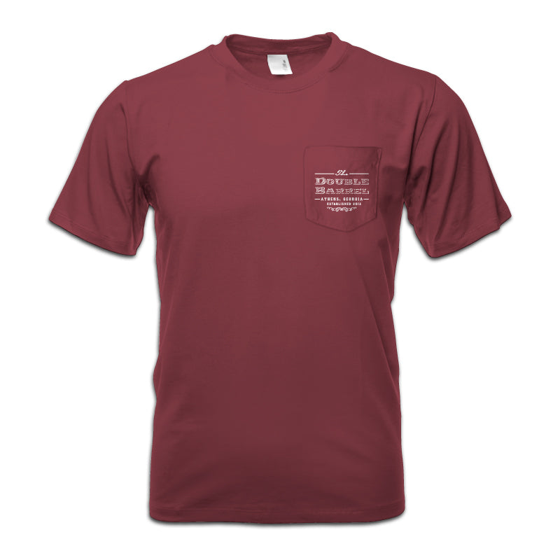 6.1 oz. 100% Ringspun Cotton. Small Logo on Pocket & Large design on Back.